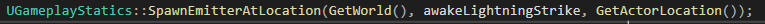ugameplaystatics안의 spawnemitteratlocation함수로 스폰시킨다