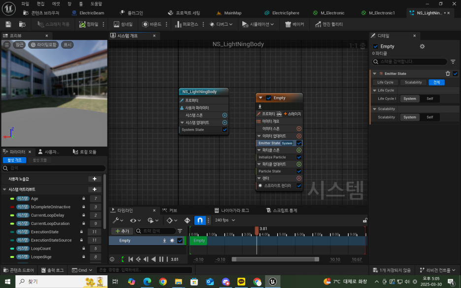이펙트를 추가해보자 파티클시스템 즉 케스케이드는 다음과 같이 추가할수있다