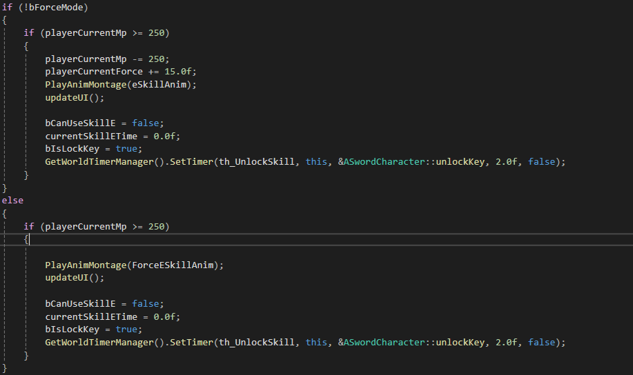 bForceMode라는 변수를 사용해서 force모드에서 나오는 애니메이션을 달리했다