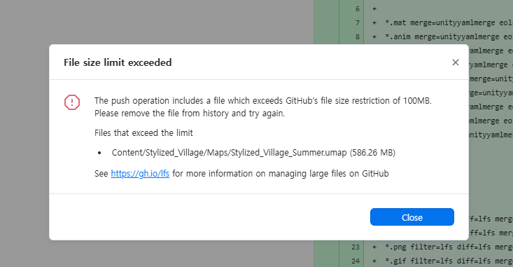 Lfs라는걸 사용하여 용량이 큰 파일을 따로 업로드하는 작업을 해줘야합니다