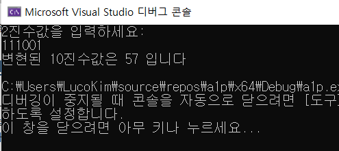 10진수값을 2진수로 변환하거나 2진수값을 10진수값으로 변환하는 코드를 짜보자
