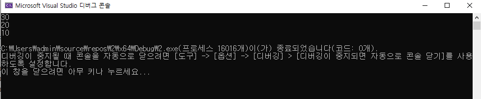 int타입으로 스택1과 스택2를 123, 10,20,30 을 넣고