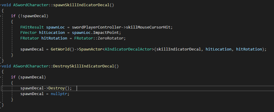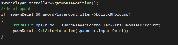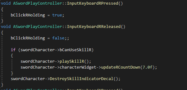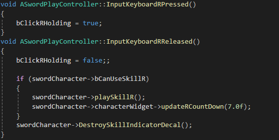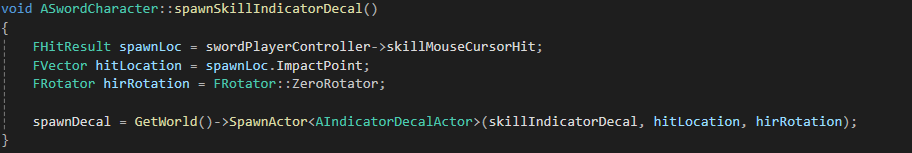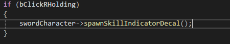 이렇게 누르고있을때 spawnSkillIndicatorDecal함수를 실행시키게해줬다