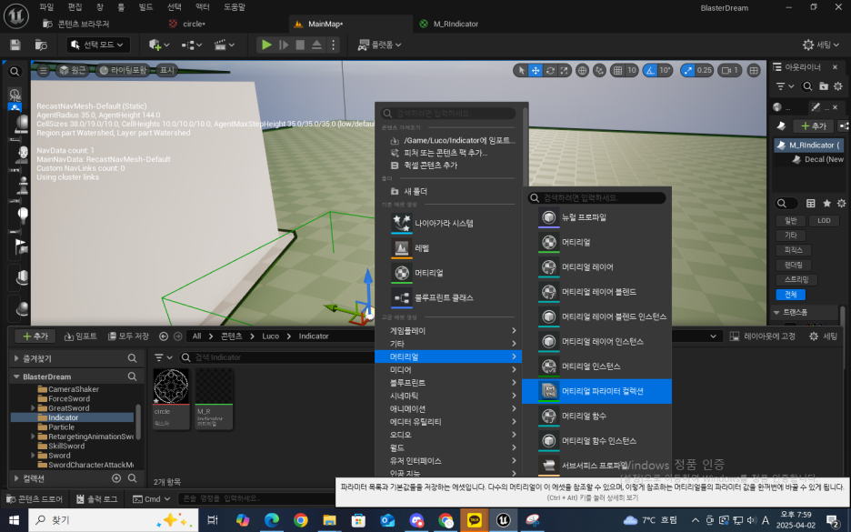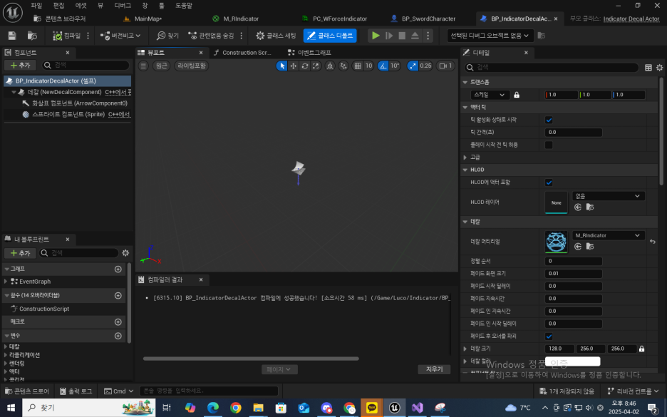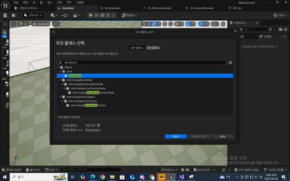 만들어둔 C++클래스를 블루프린트로 만들고 데칼메테리얼을 끼워준다