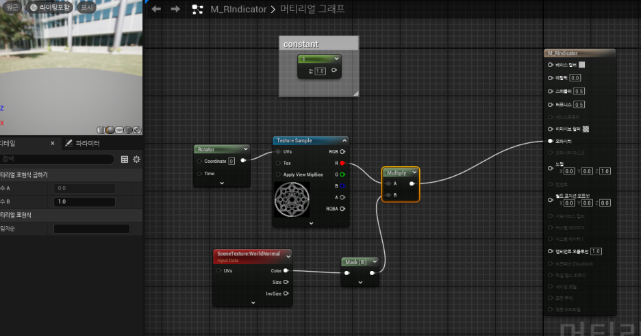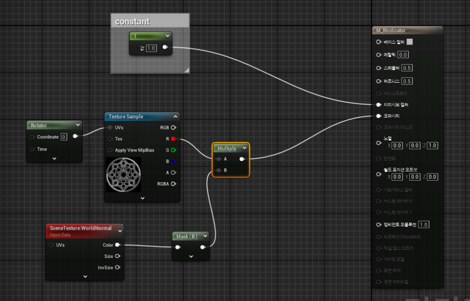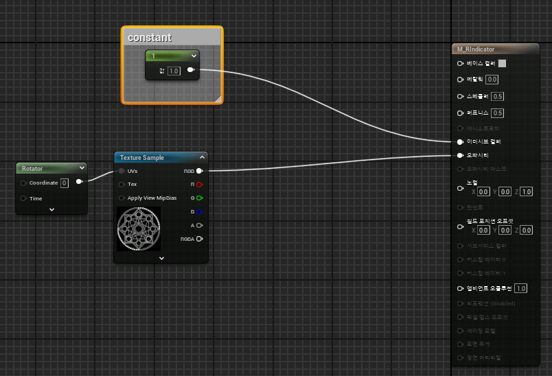 constant에있던걸 노드를 연결해제하고 이미시브컬러에 연결해준다