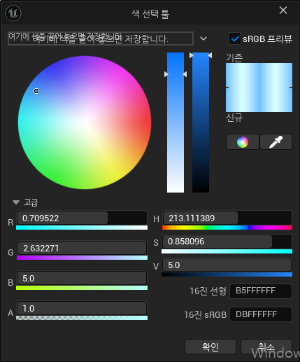 벡터파라미터에서 값을 Color으로 변경하고 디폴트값을 준다