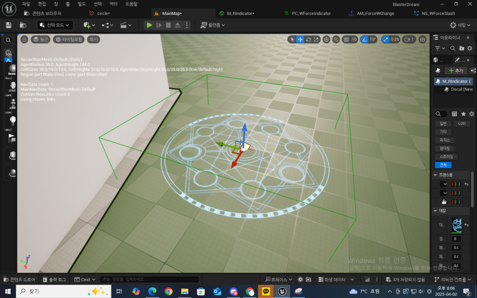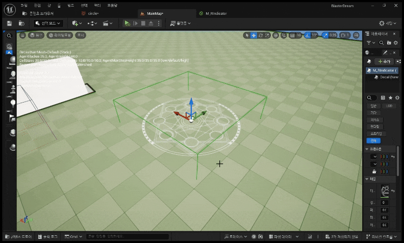 이제 월드에 배치시 넣은 데칼이 잘 보이는걸 확인할수있다