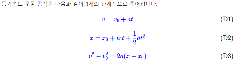 우리는 거리, 속도, 가속도, 시간 관계를 나타내는 등가속도 법칙을 찾아야하니