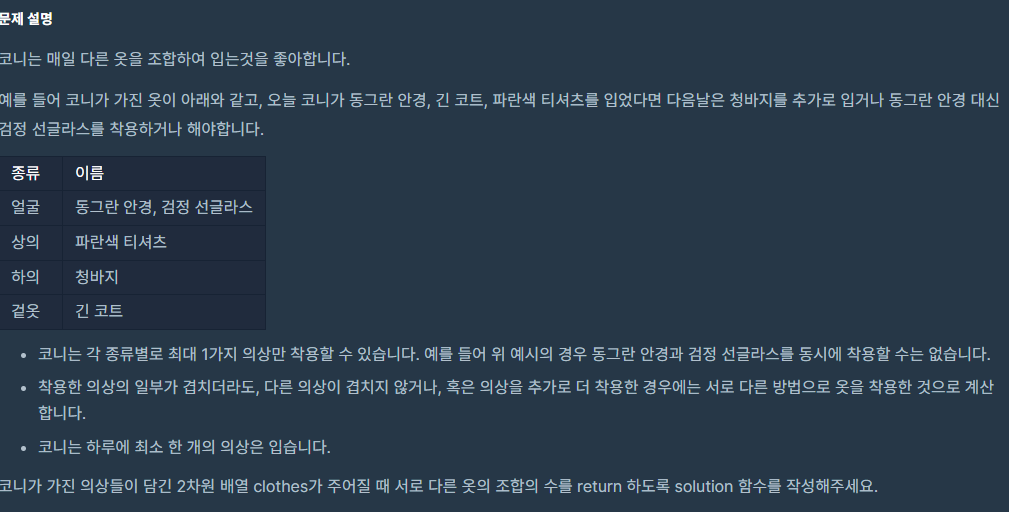 문제해석 : 옷 종류와 옷 가짓수를 생각해서 푸는 문제