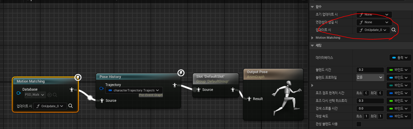 모션매칭의 함수에서 업데이트시 함수를 추가해주겠습니다