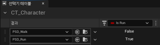 선택기 테이블을 만들고 나의 애님블루프린트와 연동