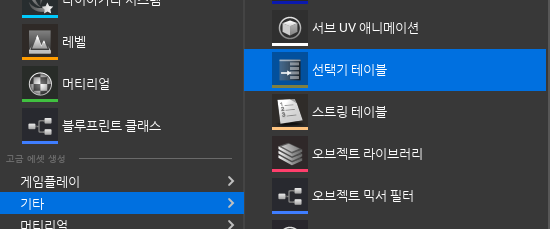 기타 -> 선택기 테이블을 선택하여 나의