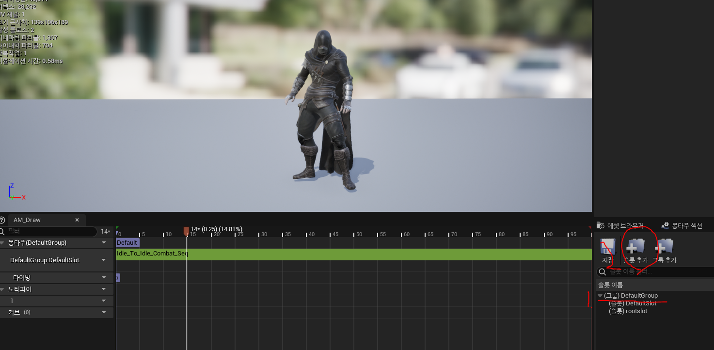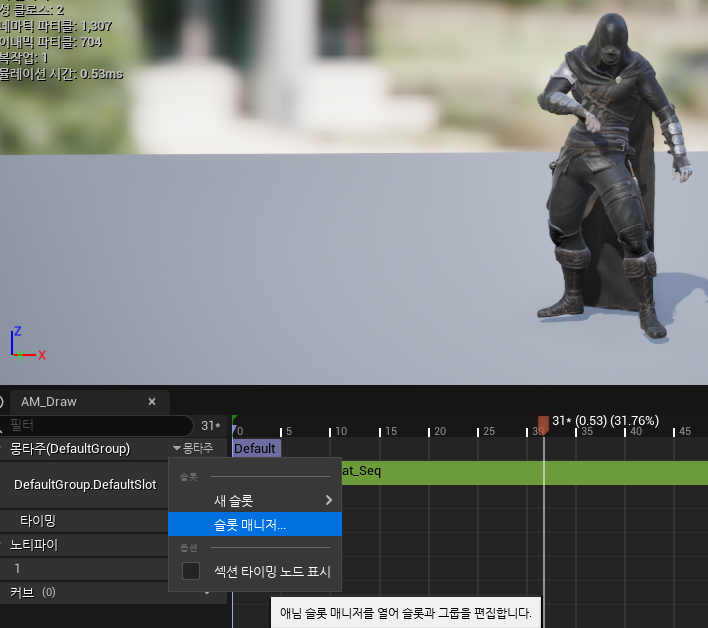 사용할 Draw / Sheath 애니메이션을 리타게팅 후 리타게팅 애니메이션을 몽타쥬로 만들어준뒤