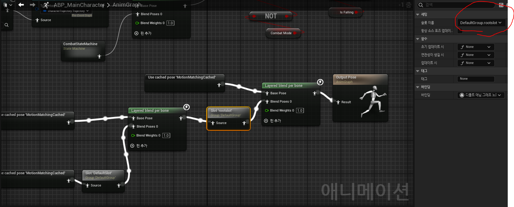 사용할 애니메이션을 전부 슬롯이름을 rootslot으로 변경해줍니다