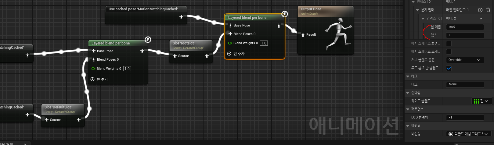 두번째 Layered blend per bone 노드는 root기준 1 입니다