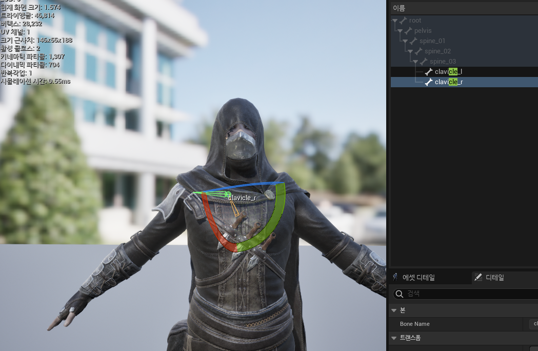 clavicle_r 기준으로 상체 애니메이션이 별도로 적용되는것을 확인할수있습니다