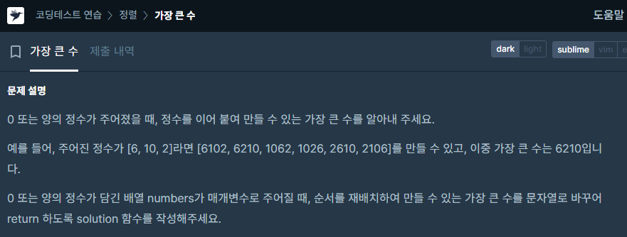 앞수 a 뒷수 b를 합쳤을때 더 큰수를 앞으로 "정렬"