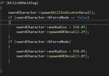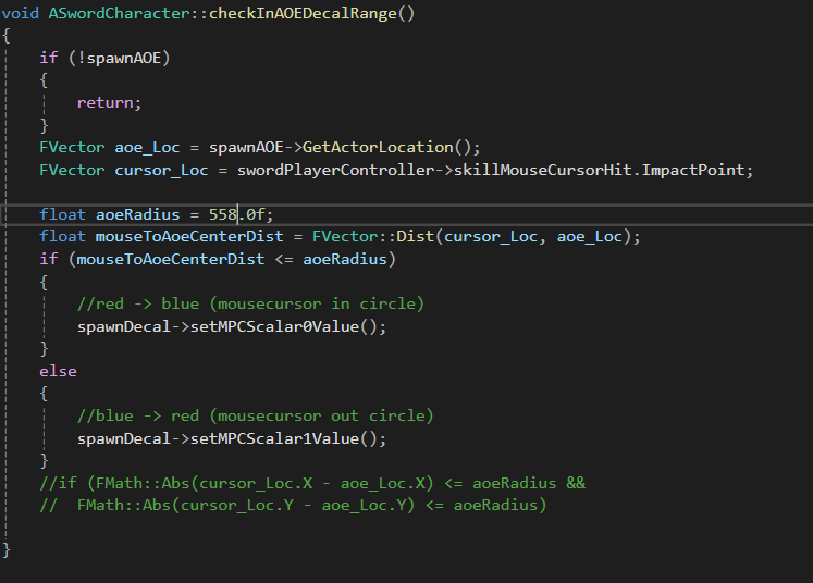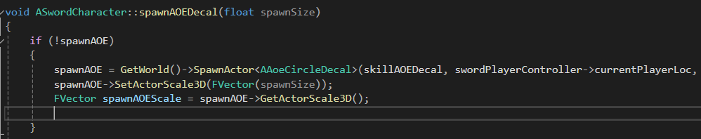 spawnAOEDecal에 매개변수 spawnSize를 추가해줘서 매개변수로 크기를 제어한다