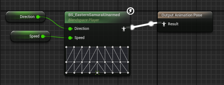 해당 애님인스턴스에 StateMachine내에서 구한 변수값으로 블렌드스페이스를 연동해주었습니다