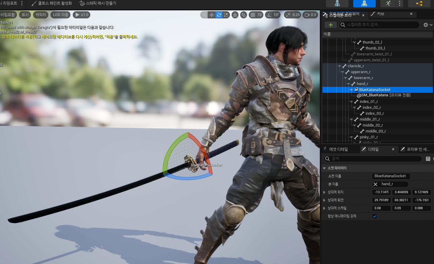 또한 무기마다 사용할 소켓을 만들어준뒤 위치를 잡아줍니다