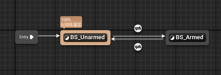 무기를 들고있을때와 안들고있을때의 블렌드스페이스를 별도로 만들어 스테이트머신에서 변수로 제어했습니다