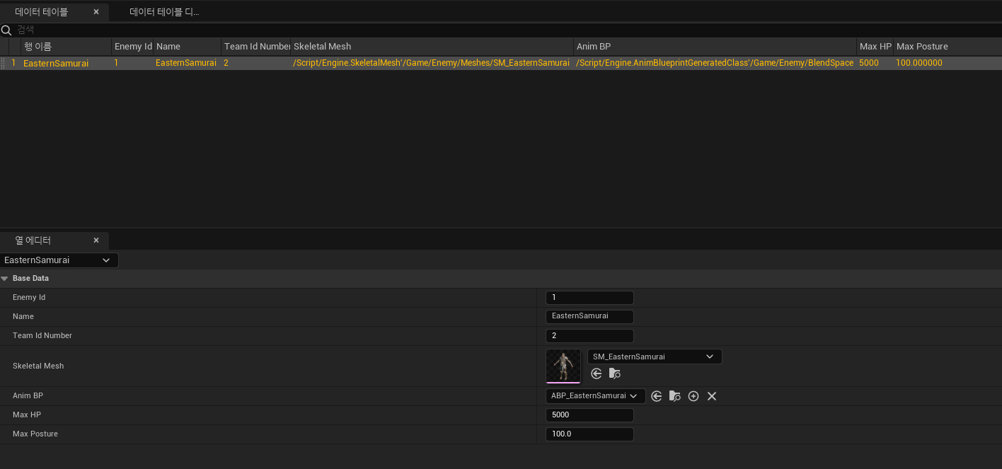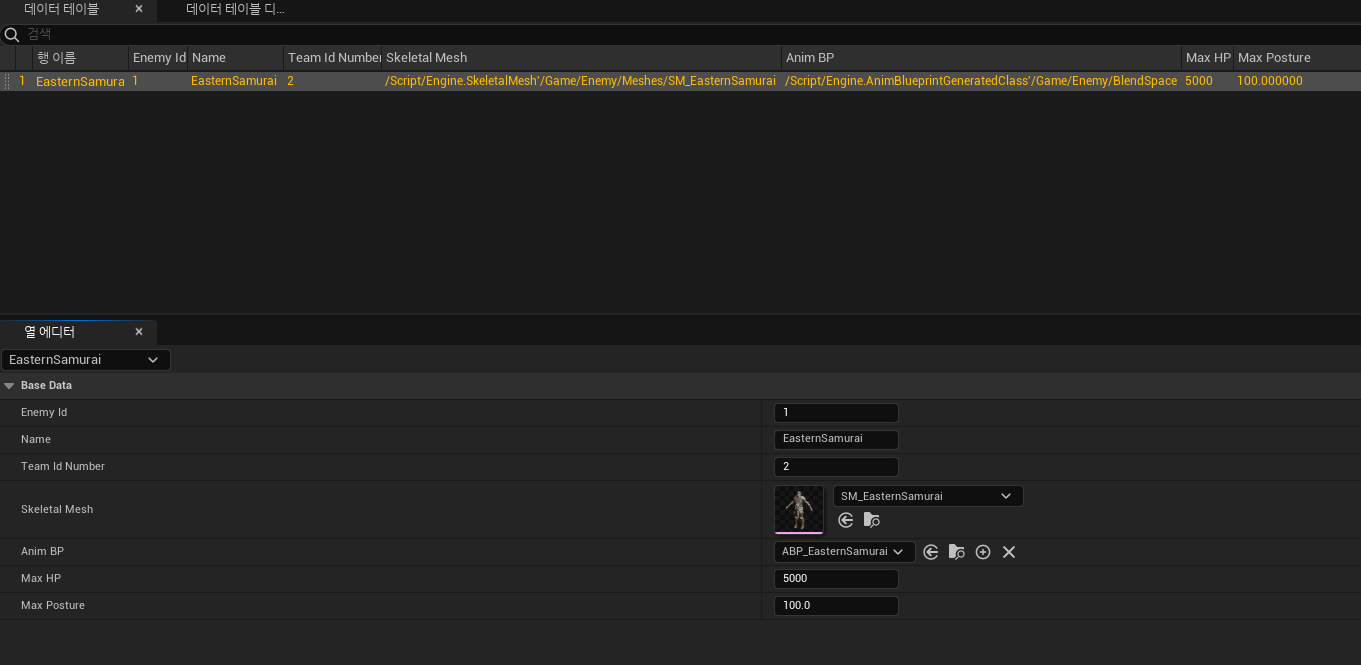 Base가되는 Enemy에서 데이터테이블의 값을 인식한뒤