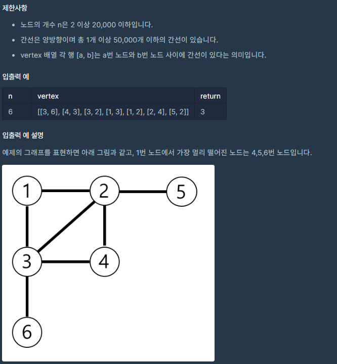 n의 갯수만큼의 graph가 존재하고 vertex 배열처럼 연결되어있을때 1번 노드에서 가장 멀리떨어진
