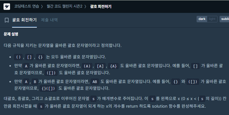 제일 앞 글자를 구해서 그 문자를 한칸씩 회전시키면서 스택을 사용하여 올바르게 짝지어지는지 유효한지 검사