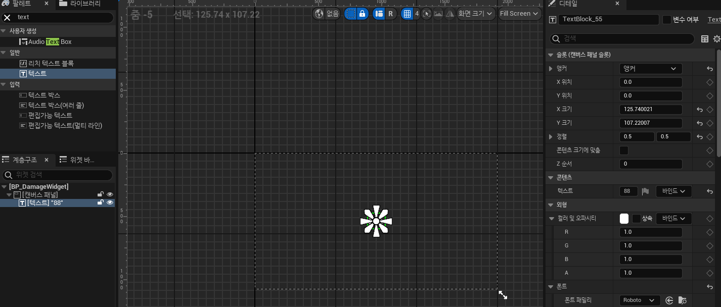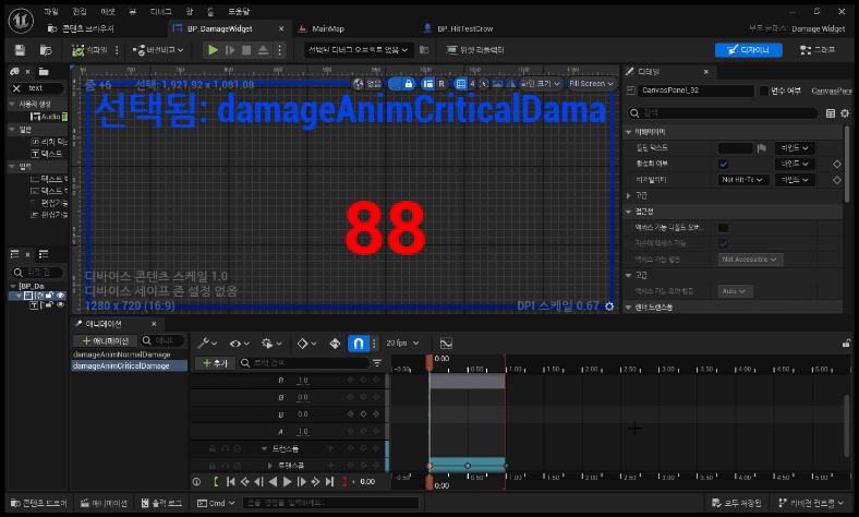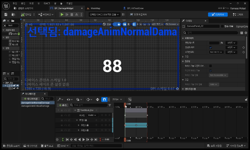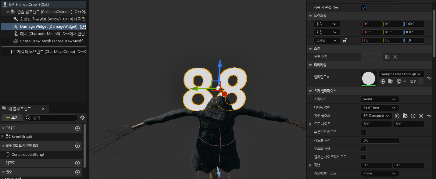 이제 이 위젯컴포넌트에서 데미지텍스트가 출력되도록 해보겠다
