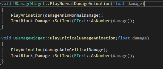 그리고 damage를 매개변수로 받아 데미지를 변경해줄 SetDamageText함수를 만들어줍니다
