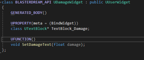 사용할 대상은 text블록 그리고 이름은 TextBlock_Damage (내가 작성한 이름) 이름과 동일하게 작성