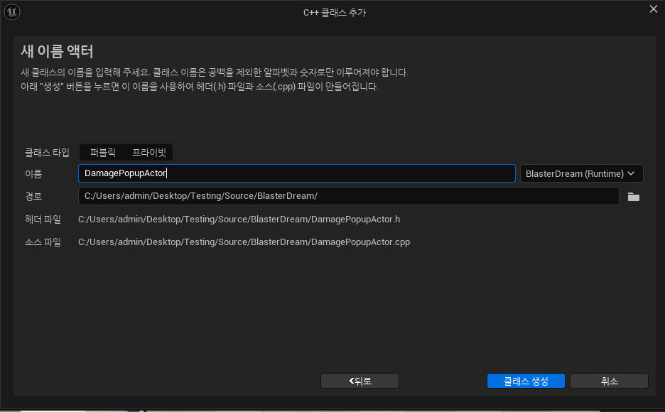이렇게 작성하면 팝업액터의 코드작업은 끝