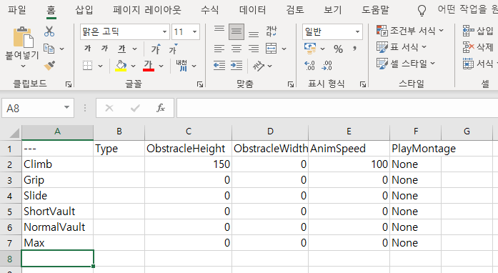 언리얼 내부에서 데이터테이블을 만들고 외부로 CSV파일로 익스포트시켜준다