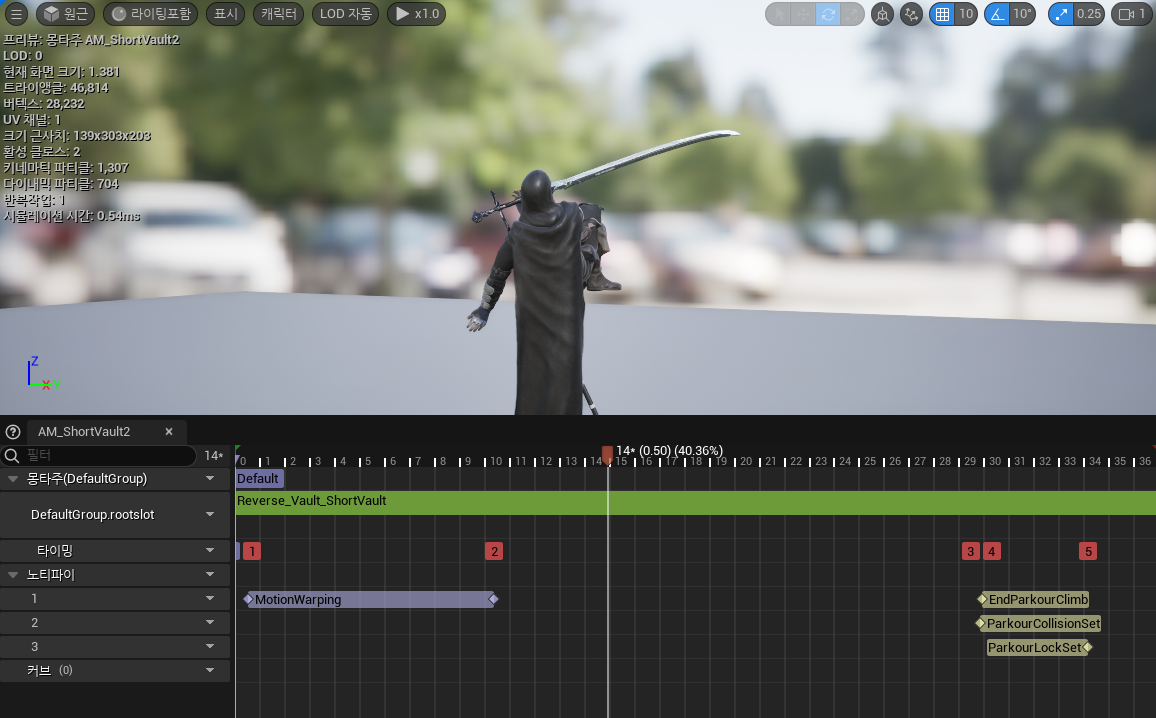 해당 벡터로 워프하는 모션워핑을 적용해주고 필요한 노티파이를 적용해주었습니다