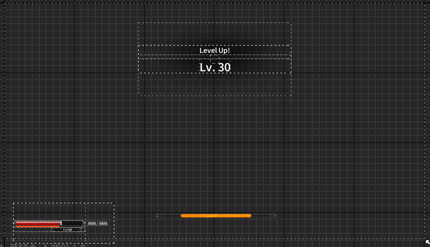 좌측하단의 주황색 바 가 경험치 Exp와 바인드된 위젯입니다