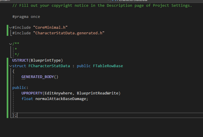FTableRowBase를 상속받아줍니다 (c++클래스 제작할때는 빈 c++로 제작 public FTableRowBase를 작성해야한다는뜻)