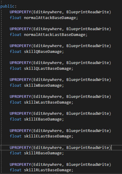 캐릭터에서 사용하고있는 스킬에 대한 FString값 변수를 선언