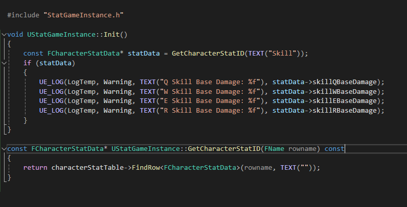 그러면 statGI 즉 내 게임인스턴스에서 데이터테이블들의 값을 받아올 함수를 선언하기전에
