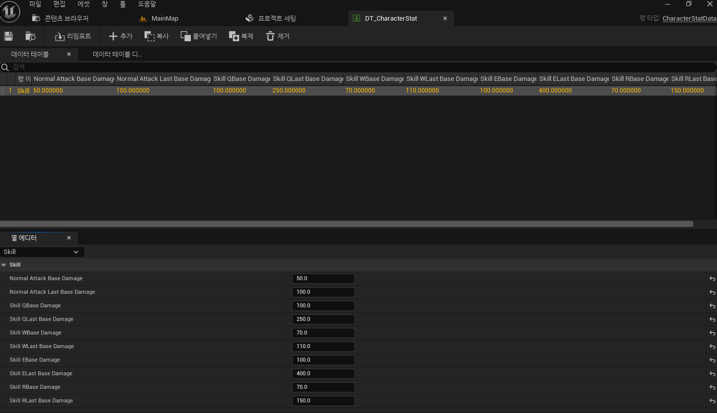 characterStatTable로 내가만든 데이터 테이블을 넣어줄자리를 만들고