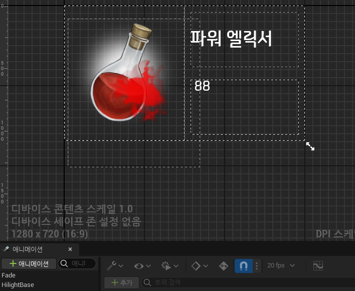 Fade애니메이션 -> 하이라이트애니메이션 -> Fade애니메이션 역순 으로 연출됩니다