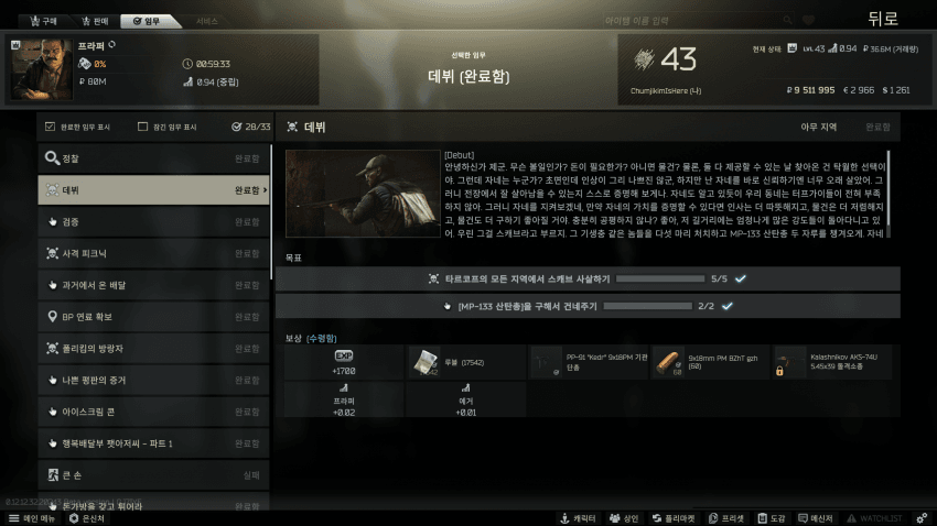 타르코프 퀘스트창처럼 원하는 퀘스트를 의뢰하고