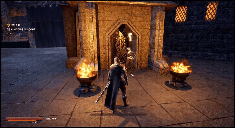 구현내용플레이어가 NPC 에게 퀘스트를 의뢰하고, 해당 퀘스트를 완료하면보상을 획득하는 NPC 의뢰 기반으로 퀘스트 수락 - 진행 - 완료 - 보상 까지이어지는 퀘스트 시스템을 구현하였습니다.