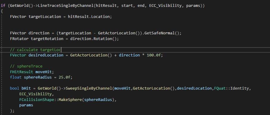 캐릭터 앞에 캡슐트레이스(라인트레이서보다 굵음)을 쏴서 물체를 확인하고
