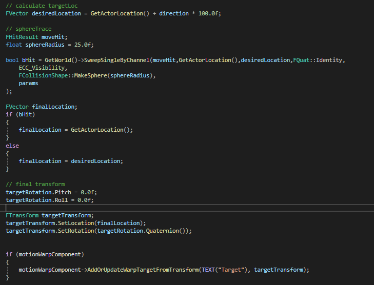그럼 이제 이 구한 targetTransform을 모션워핑값으로 넘겨주면됩니다