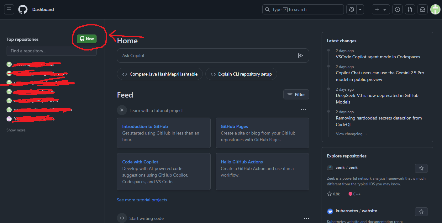New를 눌러 새로 공유할 프로젝트를 제작해줍니다