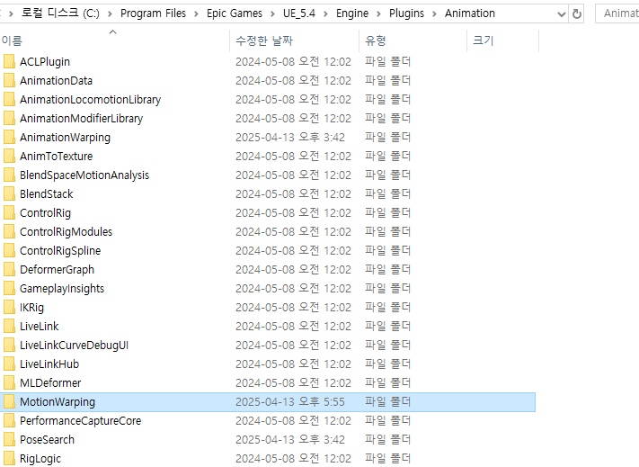 저의 경우 Motion Warping 플러그인을 사용했으니