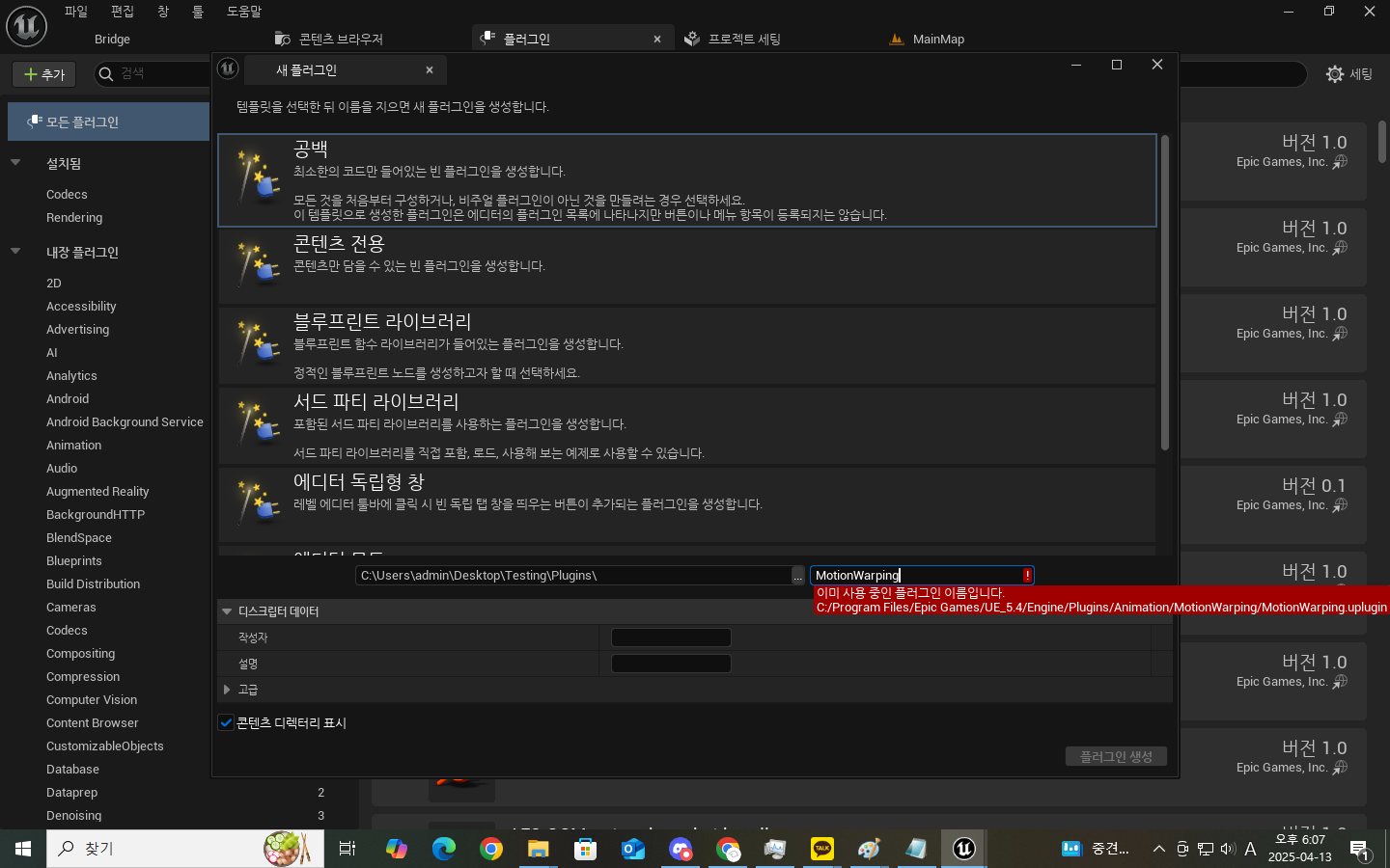 그리고 마지막으로 uplugin 파일을 수정해야합니다