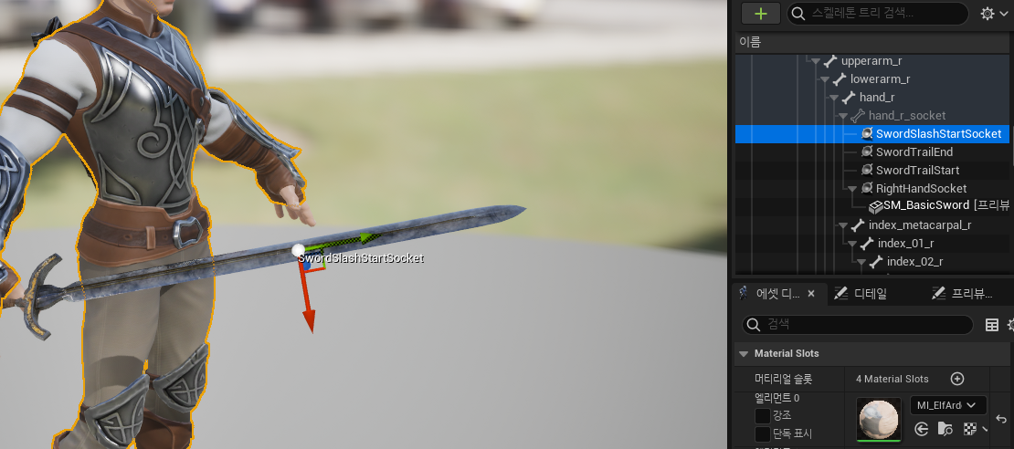 검기를 발사할위치는 검이니 검 소켓을 만들어줍니다