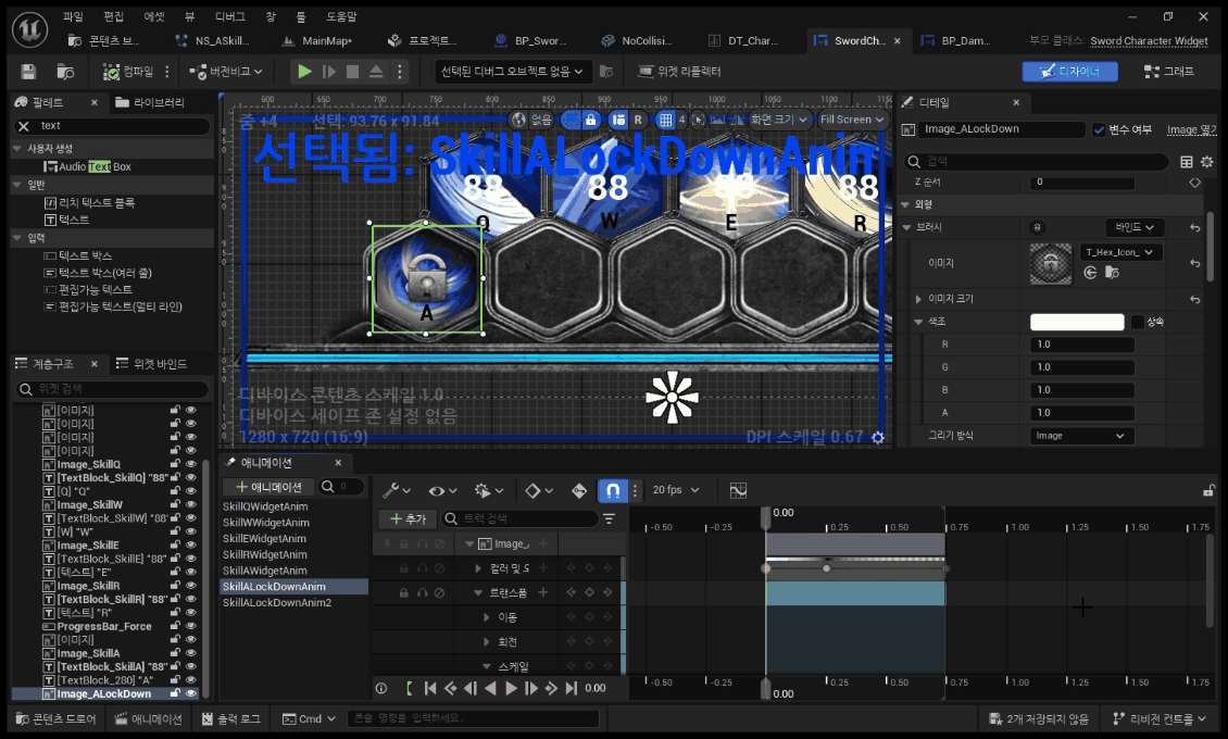 해당 스킬은 각성폼일때만 사용가능하고 각성폼이 아닐때는 사용할수없도록 ui애니메이션을 추가해보도록 하겠습니다