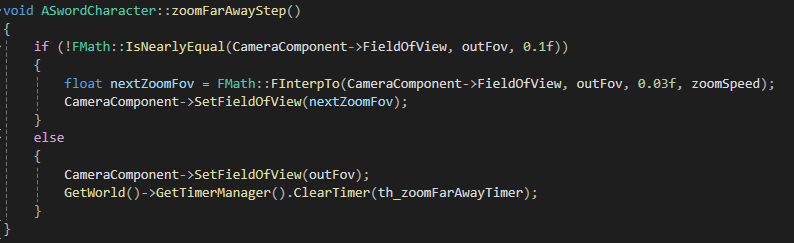 outFov까지 InterpTo이동 으로 시점을 뒤로 당기고